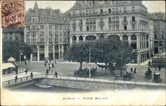 Ak Genève Genf Stadt, Place Bel Air, Straßenansicht, Gebäude, Straßenbahn