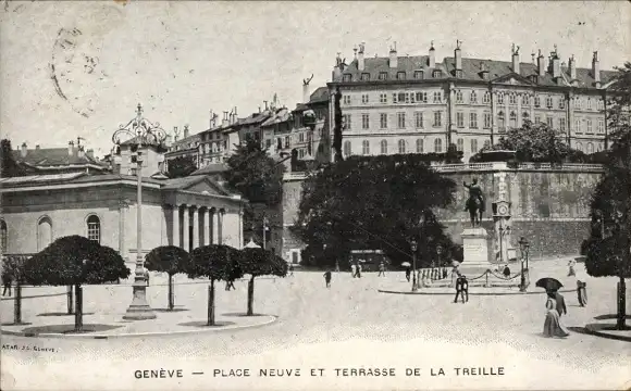 Ak Genève Genf Stadt, Place Neuve et Terrasse de la Treille, Denkmal