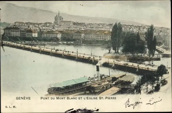 Ak Genève Genf Stadt, Pont du Mont Blanc et l'Eglise St. Pierre