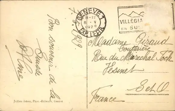 Zustand, siehe Scan, gelaufen, 1929 - ca 14 cm X 9 cm