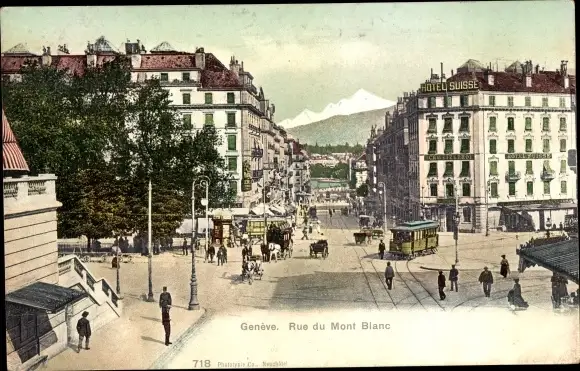 Ak Genève Genf Stadt, Rue du Mont Blanc, Tramway, Hotel Suisse