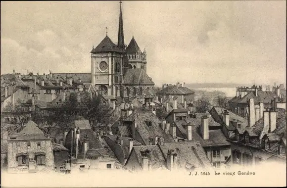 Ak Genève Genf Stadt, Teilansicht mit St. Pierre Kirche