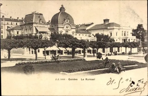 Ak Genf, Blick auf den Kursaal mit Parkanlage, Menschen