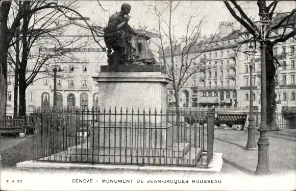 Ak Genf Genf, Denkmal von Jean Jacques Rousseau