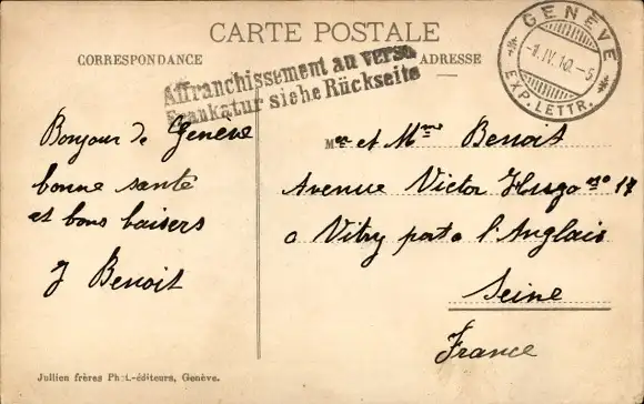 Zustand, siehe Scan, gelaufen, 1910 - ca 14 cm X 9 cm