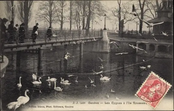 Ak Genf Genf Schweiz, Die Schwäne auf der Ile Rousseau