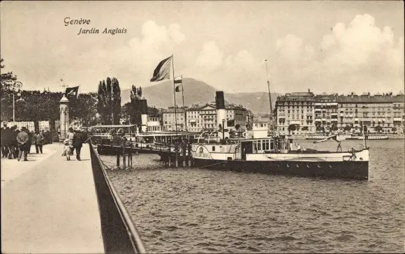 Ak Genf Genf Schweiz, Englischer Garten, Dampfschiff Major Davel