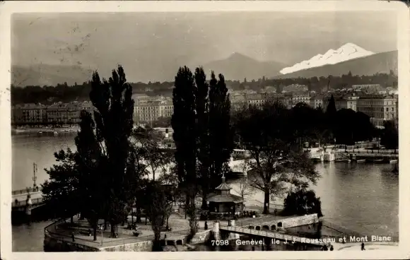 Ak Genf Genf Schweiz, Ile JJ Rousseau und Mont Blanc