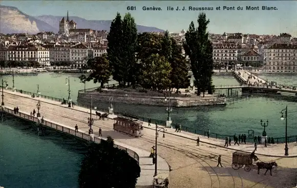 Ak Genf Genf Schweiz, Ile JJ Rousseau und Pont du Mont Blanc