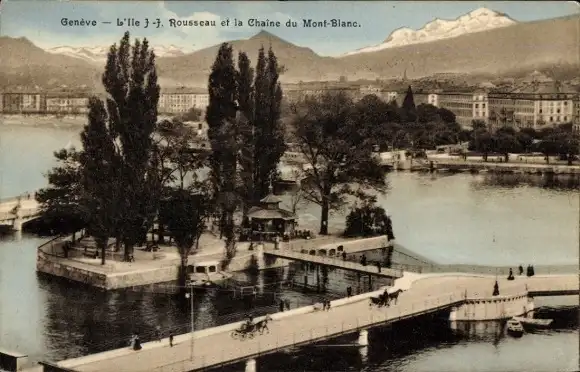Ak Genf Genf Schweiz, Ile JJ Rousseau und das Mont-Blanc-Gebirge