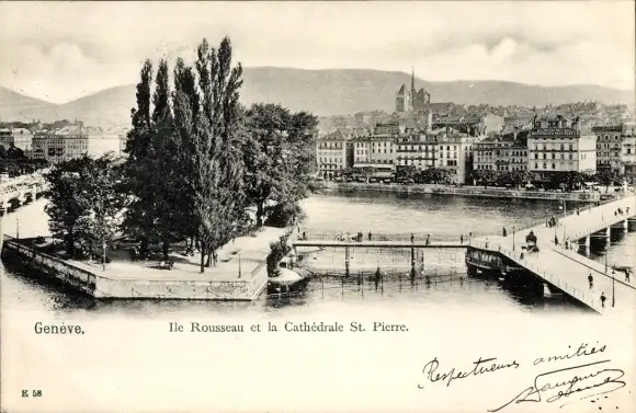 Ak Genf Genf Schweiz, Ile Rousseau, Kathedrale St. Pierre