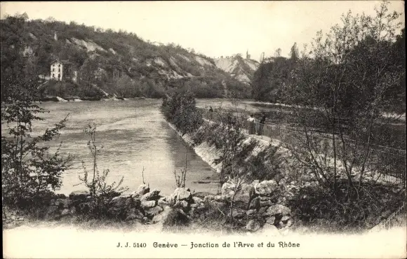 Ak Genf Genf Schweiz, Kreuzung von Arve und Rhône