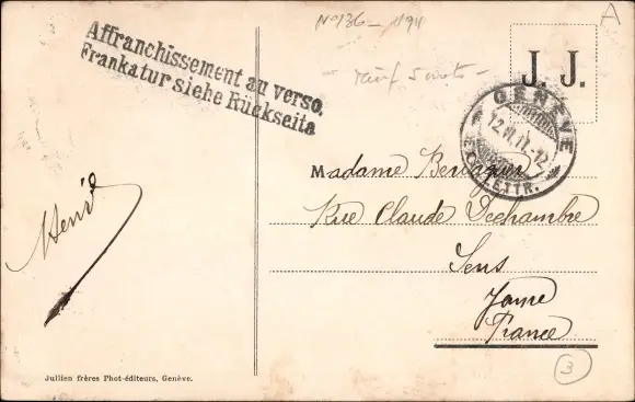 Zustand, siehe Scan, gelaufen, 1911 - ca 9 cm X 14 cm