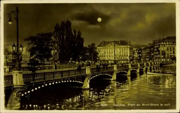 Ak Genf Genf Schweiz, Mont-Blanc-Brücke bei Nacht