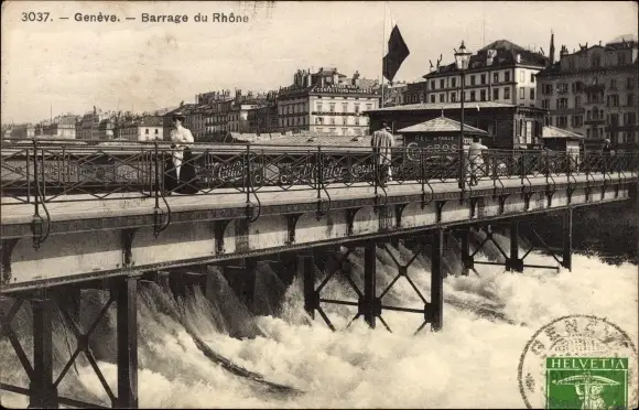 Ak Genf Genf Schweiz, Rhone-Staudamm