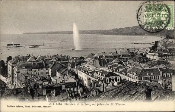 Ak Genf Genf Schweiz und der See, gesehen von St. Pierre