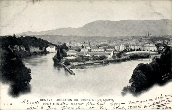 Ak Genf Genf Stadt, Kreuzung von Rhone und Arve