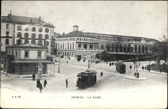 Ak Genf Genf Stadt, La Gare, Straßenbahn