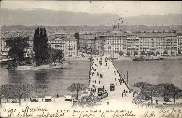 Ak Genf Genf Stadt, Mont-Blanc-Brücke und Kai