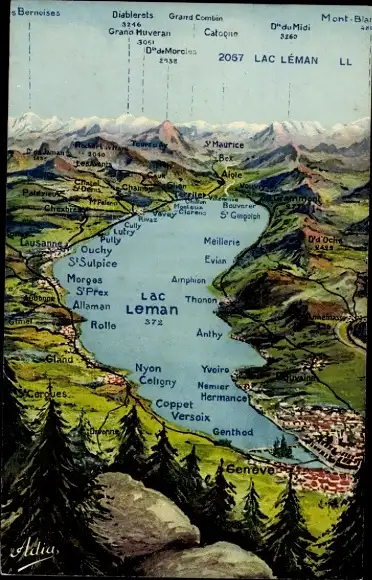 Ak Genf Kanton Schweiz, Lac Leman, Gesamtansicht