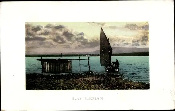 Ak Genf Kanton Schweiz, Lac Leman, Segelboot, Abendstimmung