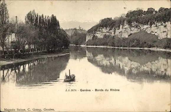 Ak Genf, Rhone, Dampfboot, Steilhänge von Saint-Jean