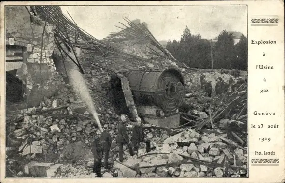 Ak Genf Schweiz, Explosion in der Fabrik am 23. August 1909