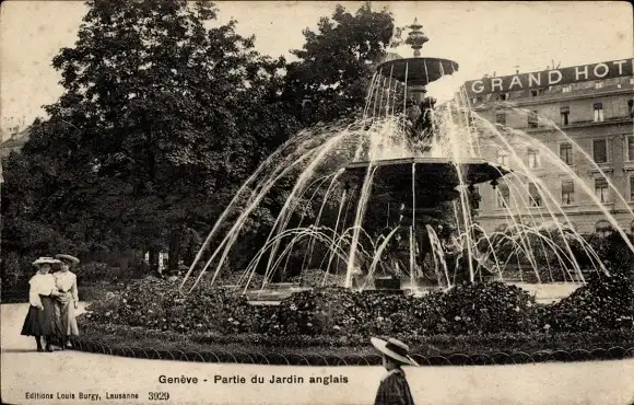 Ak Genf Schweiz, Jardin Anglais, Große Fontaine, Grand Hotel La Métropole