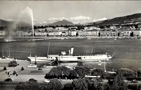 Ak Genf Schweiz, La Rade, der Jet d’eau und Mont Blanc, Dampfschiff "Simplon"