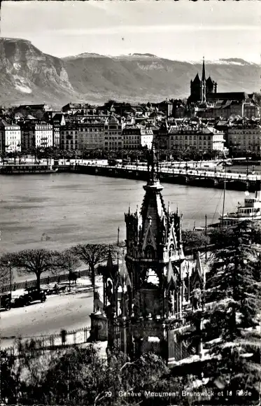 Ak Genf Schweiz, Teilansicht, Monument Brunswick