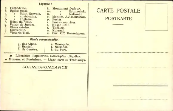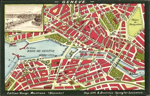Ak Genf Stadt Schweiz, Karte von Rade de Genève, Jet d'eau, Sehenswürdigkeiten, Hotels