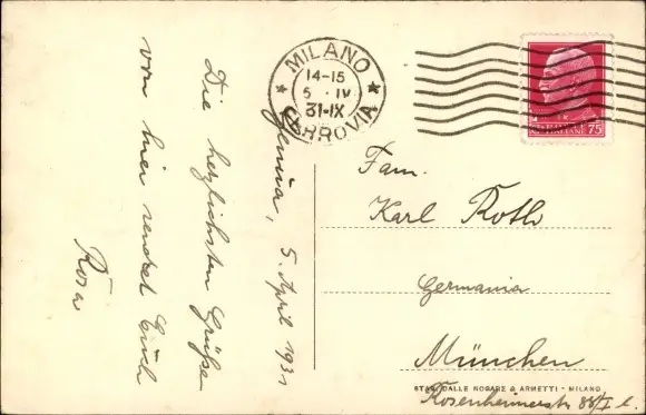 Zustand, siehe Scan, gelaufen, 1931 - ca 14 cm X 9 cm