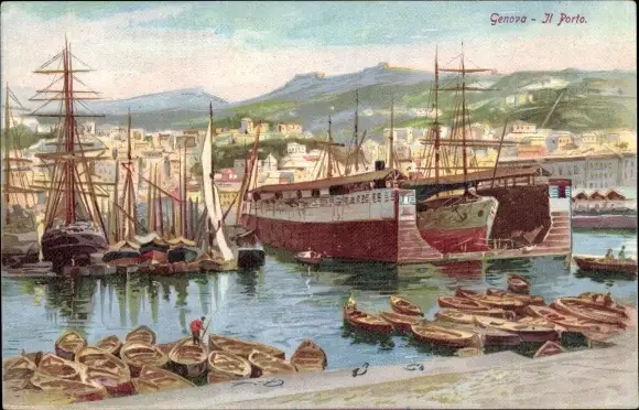 Ak Genova Genua Liguria, Il Porto, Hafenbild