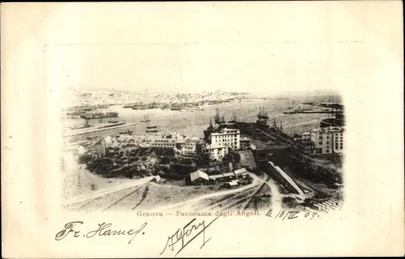 Ak Genova Genua Liguria, Panorama degli Angeli, Hafen, Gesamtansicht