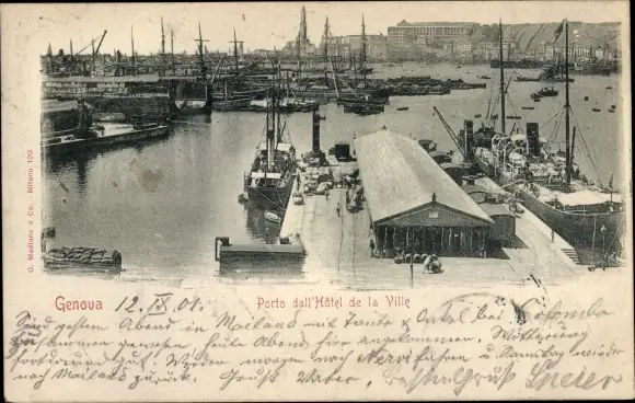 Ak Genova Genua Liguria, Porto dall Hotel de la Ville