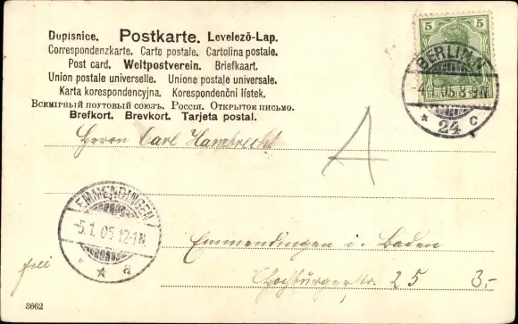 Zustand, siehe Scan, gelaufen, 1905 - ca 9 cm X 14 cm