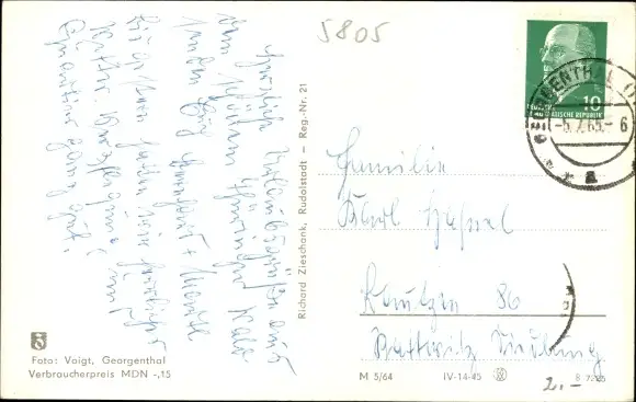 Zustand, siehe Scan, gelaufen, 1965 - ca 14 cm X 9 cm