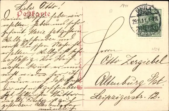 Zustand, siehe Scan, gelaufen, 1911 - ca 14 cm X 9 cm