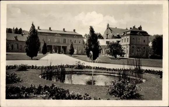 Ak Gera Thüringen, Blick in den Küchengarten, Fontäne