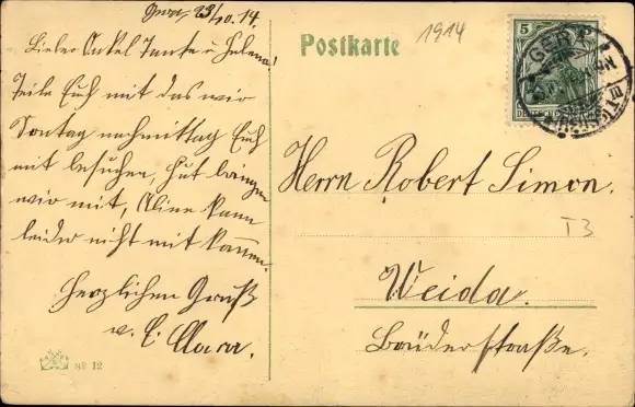 Zustand, siehe Scan, gelaufen, 1914 - ca 14 cm X 9 cm