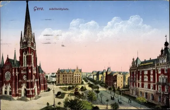 Ak Gera in Thüringen, Adelheidplatz, Kirche, Denkmal