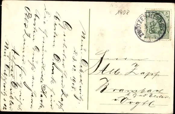 Zustand, siehe Scan, gelaufen, 1908 - ca 14 cm X 9 cm
