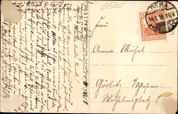 Zustand, siehe Scan, gelaufen, 1918 - ca 14 cm X 9 cm