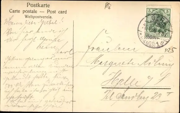 Zustand, siehe Scan, gelaufen, 1908 - ca 14 cm X 9 cm