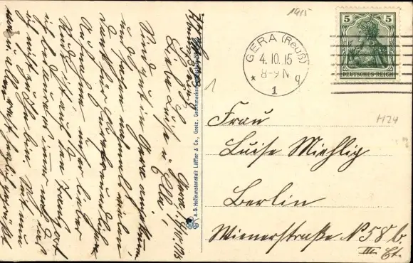 Zustand, siehe Scan, gelaufen, 1915 - ca 14 cm X 9 cm