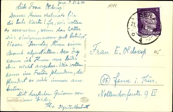 Zustand, siehe Scan, gelaufen, 1944 - ca 14 cm X 9 cm