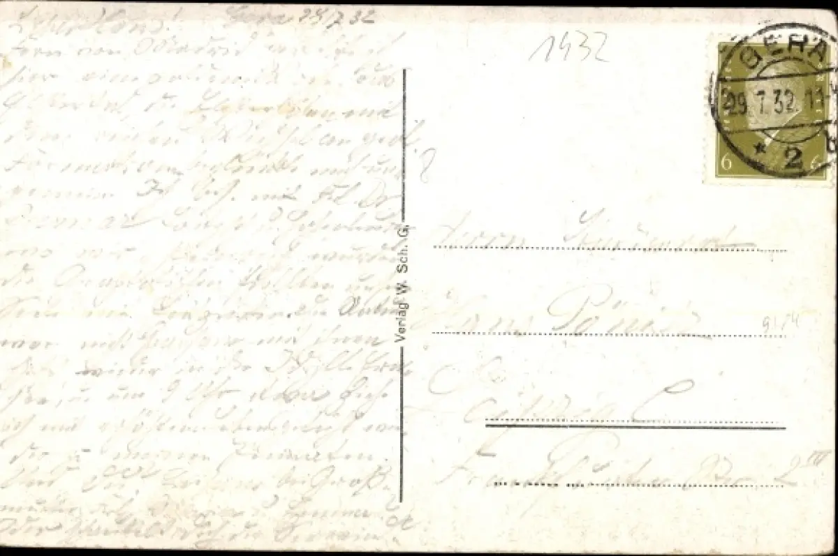 Zustand, siehe Scan, gelaufen, 1932 - ca 14 cm X 9 cm