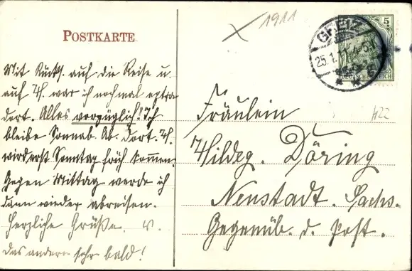 Zustand, siehe Scan, gelaufen, 1911 - ca 9 cm X 14 cm