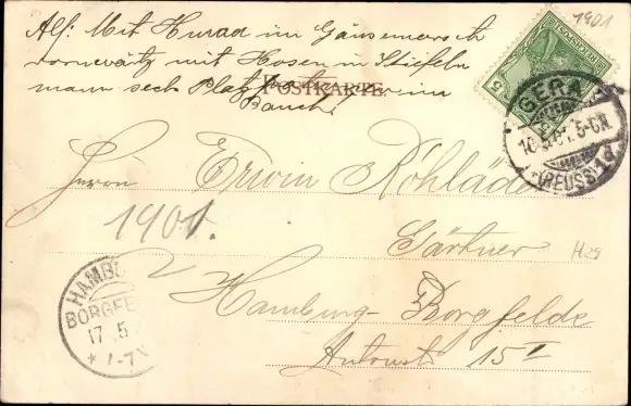 Zustand, siehe Scan, gelaufen, 1901 - ca 14 cm X 9 cm