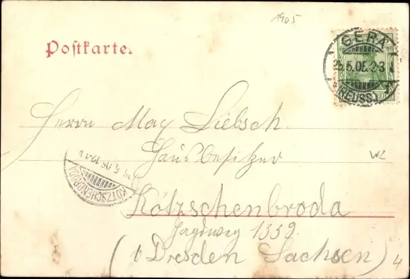 Zustand, siehe Scan, gelaufen, 1905 - ca 14 cm X 9 cm